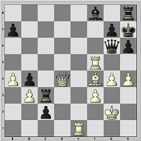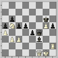 29...Qg4! 30.Rd2 Qxb4 31.Ne2 f5? 32.Ng3 f4 33.Nf5 Qb1+ 34.Kf2 fxe3+ 35.Ke2! Черные сдались.