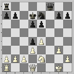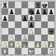 1.d4 Nf6 2.Nf3 e6 3.c4 b6 4.g3 Ba6 5.b3 Bb4+ 6.Bd2 Be7 7.Bg2 c6 8.Bc3 d5 9.Ne5 Nfd7 10.Nxd7 Nxd7 11.Nd2 0–0 12.0–0 Rc8 13.e4 b5 14.Re1 dxe4 15.Bxe4 bxc4 16.Nxc4. Одна из актуальных позиций новоиндийской защиты.