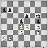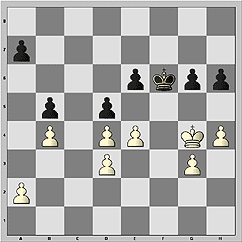 25.Kf2 Ke7 26.Kf3 Kf6. На ферзевом фланге ситуация симметрична. Ни одна из сторон не может там выиграть темп. Здесь наступил решающий момент в партии. Похоже, соперники обменялись ошибками.