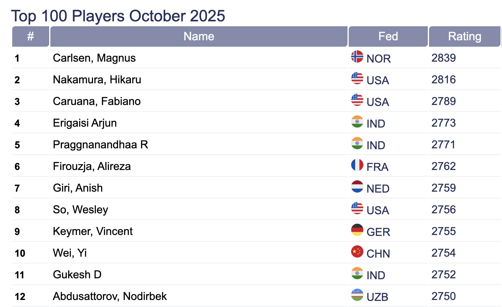 Фармит он Каруану (дважды обыграл его в American Cup 2025 и один раз в Norway Chess 2025), с кандидатов в мастера много не поимеешь. Вот где безобразие. Я бы ввёл на этот счёт правило, уменьшив вес победы над Фабиано. А то тот нарастил рейтинг и постепенно выдаёт его Накамуре.