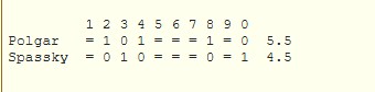 =11 Karpov 51 2688 0 0 ½ ½ 1 ½ ½ ½ ½ ½ * 0 1 ½ 6
