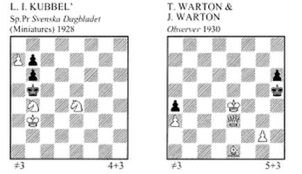 А в первой чувствуется стиль Куббеля, но то, что хорошо для этюдов, для трёхходовки оказывается слишком простым. Не над чем голову поломать. |