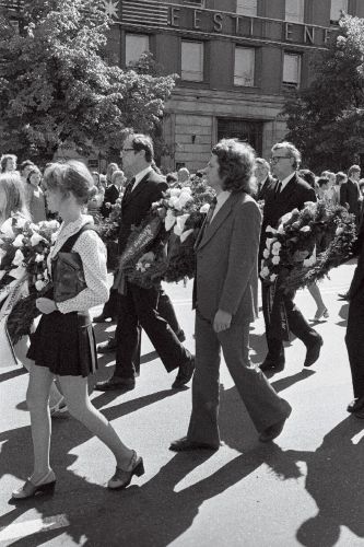 Более 100 000 человек выстроились вдоль улиц эстонской столицы, чтобы отдать последние почести. |