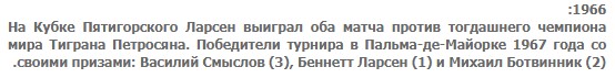 | Точно, Балашов. Меня смутила медаль на груди. Но ведь Балашов, разделив 3-4 места с Каспаровым, наверное, получил бронзу. |