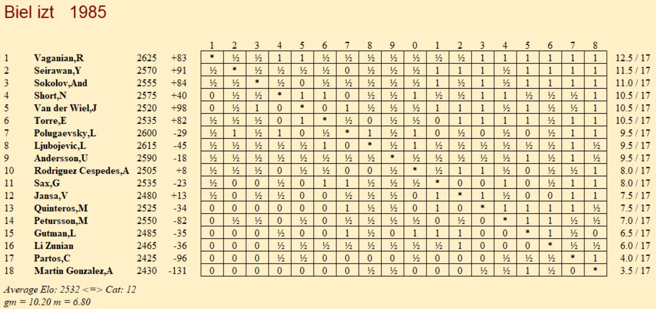 40 лет назад, в этот день, стартовал последний из трёх интерзональных турниров ФИДЕ в Биле (Швейцария). Другие проходили в Тунисе и Такско. Ваганян, Сейраван, А. Соколов и Шорт прошли в претенденты (Шорт — после дополнительного матча — классического, а не рапид/блиц! — против ван дер Виля и Торре). |