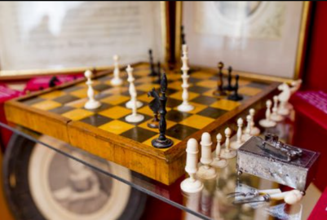 Немецкий композитор Роберт Шуман был страстным шахматистом. Он научил Брамса играть в шахматы. Шуман называл шахматы своей второй страстью после музыки, отмечая интерес к их символической связи с музыкой, особенно к силе шахматной королевы. Фото 2: Шахматы Шумана.