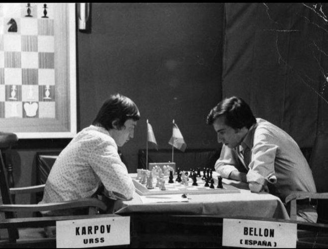 Чемпион мира Анатолий Карпов против Хуана Мануэля Беллона Лопеса, Монтья, 1976.