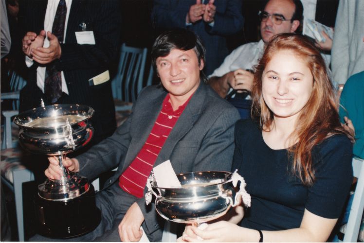 Негатив пленочный. Чемпион мира по шахматам А. Карпов вручает приз юному шахматисту И. Фейгельсону.