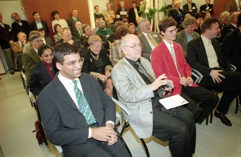 Слева направо: победитель — @vishy64theking (Виши Ананд), Виктор Корчной, Петер Леко (второе место), Йерун Пикет — позади него Ян Тимман.
