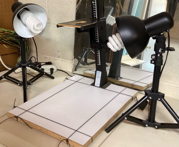 А до этой репродукционной установки я просто использовал верхушки сканеров. Клал лист лицевой стороной к стеклу, прижимал крышкой, переворачивал все стеклом кверху и снимал телефоном с рук.