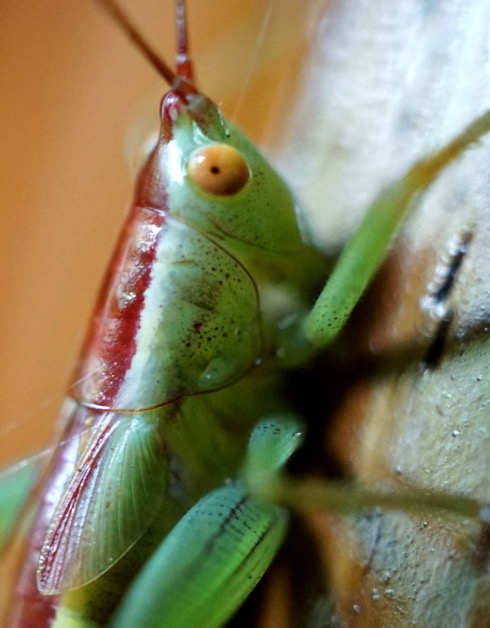 В США, конечно, тоже есть какие-то кузнечики, но у себя на участке я видел один раз только такого, причем он спокойно сидел на откосе двери: