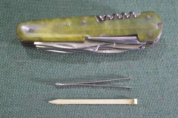 Даже став намного взрослее, я этот ножик открывал с большим трудом, даже смазка не помогала. А по задумке он был неплохой, в нем были и пилочки и ножницы и там даже микро пинцет вынимался из одного потайного слота, а из другого слота что-то похожее на зубочистку. Все вынималось с большим трудом даже сильными взрослыми пальцами.