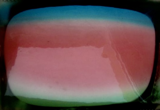 Я в ближайшем универмаге увидел специальную пленку для такого извращения превращения. На ней были три цветные полосы. Средняя, что-то среднее между цветом лиц и цветом гор. Уж не помню как я ее закрепил, может лейкопластырем, а может и пластилином. Скорее вторым, так как за неделю она несколько раз отвалилась, а потом мы ее выбросили. Но должен сказать, что первые два дня настроение было приподнятым.