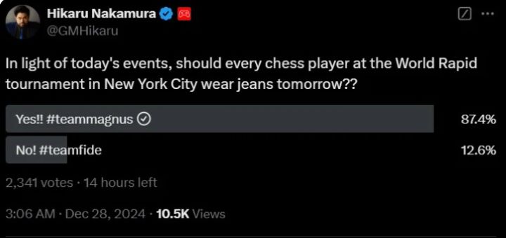 И это нанесет куда более мощный ущерб FIDE, чем если бы они разрешили Магнусу доиграть день в джинсах.
