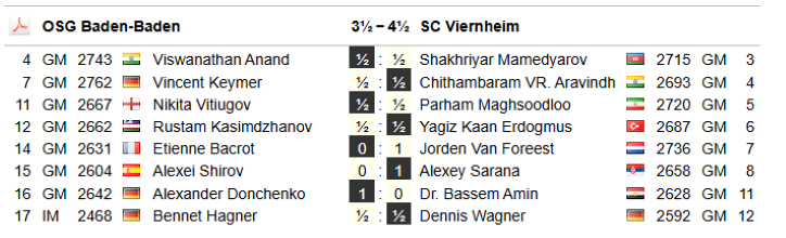 "Вирнхайм" (включая Мамедьярова и его ученика Эрдогмуша, чей рейтинг 1 мая, вероятно, превысит 2700) выиграл шахматную Бундеслигу сезона 2025–2026 за тур до конца.