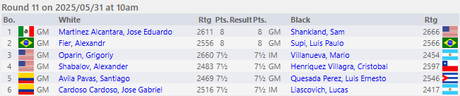 В предпоследнем (10-м) туре оба лидера проиграли! (Опарин и Кесада). И вот пары последнего тура:
