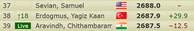 На текущий момент официальный рейтинг ФИДЕ у Эригайси 2775, у Абдусатторова 2751, у Синдарова 2726, у Ниманна 2725.
