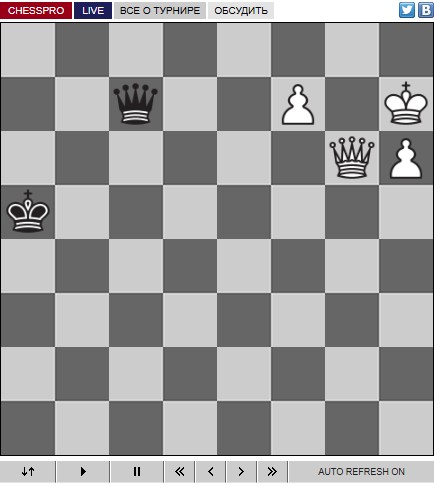 Нет, не в этом дело, просто после двух первых туров мне самому более или менее ясен выбор. К сожалению, здесь часто не угадываю. Да, ничьи бывают очень интересные, но в онлайны нередко попадают высококачественные, но совсем не зрелищные партии. Что делать, я не баба Ванга.