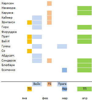 Фабиано Каруана — сейчас или никогда. Он выиграл чемпионат США без поражений, был вторым в Norway Chess, проигрывая только лучшим игрокам мира. Ничто не говорит о том, что он будет недосягаемым, но он безусловно один из главных фаворитов. Я ставлю его в уровень S.