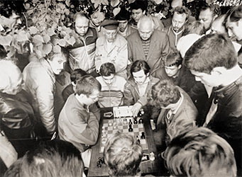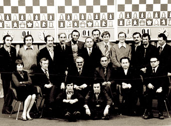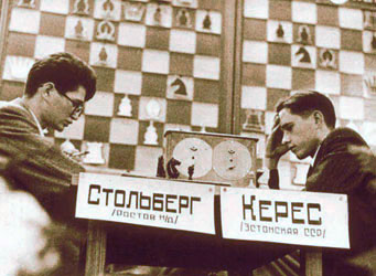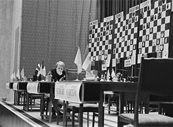 21-й чемпионат СССР: Киев, 7.01–7.02.1954. Обширный зал Дворца культуры работников легкой и пищевой промышленности переполнен.