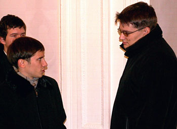 Дмитрия удалось застать уже в пальто: его партия закончилась последней, и он в компании участников уже направлялся к выходу. Он даже отказался от еды, заботливо приготовленной секретарем РШФ Анной Владимировной. Я извинился и попросил ответить на несколько вопросов.