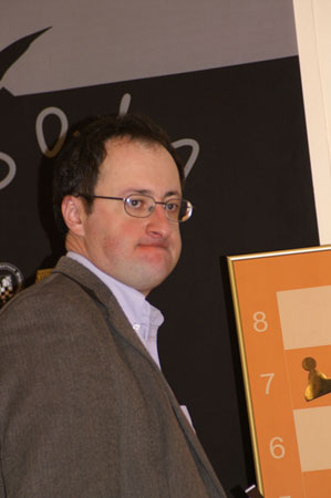 Перед вами обещанное интервью с Борисом Гельфандом. И два его фото, которые я сделал в ходе 6-го тура. На первом снимке Борис запечатлен в один из моментов демонстрации его партии с Мамедьяровым, на втором - когда он расположился в пресс-центре, сразу после того как слегка "наехал" на меня в разговоре с моим коллегой. "Наезд" в данном случае не совсем оправдан, так как, на мой взгляд, смешно отрицать боевитость самого ныне боевитого из элитных шахматистов - Топалова, которому я действительно очень симпатизирую, именно из-за его бесстрашия и сверхбоевитости.