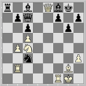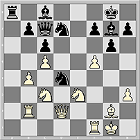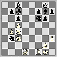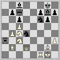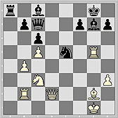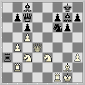 | 1...? | Ход черных. У них пешка за качество и контроль над черными полями. Но надо считаться с угрозой 30.f6, а также с ходами 30.Nc4 и 30.Ne4. Задача: рассчитать выпад 29...Ra3 и оценить его целесообразность. Прежде чем сосредоточиться на анализе проблемного варианта, обычно имеет смысл составить представление об оценке исходной позиции. Ведь если, она, например, в пользу белых, а ход 29...Ra3 приводит к равенству или обоюдоострым осложнениям, то такой исход нас устроит, и наоборот, не устроит, если в исходной позиции преимущество у черных. К сожалению, оценить позицию навскидку очень нелегко. Можно, пожалуй, предположить, что у черных должны найтись достаточные ресурсы для поддержания хотя бы динамического равновесия. Ход событий в партии подтверждает такую оценку. 29...gf!? 30.Ra2 Рискованно предложенное Мигелем Найдорфом 30.Nxf5?! Nxf5 31.Rxf5 Ne5 32.Rg5.  | 1...? | Гроссмейстер продолжает вариант так: 32...h6? 33.Rg3 Nc4 34.Rxg7+ Kxg7 35.Qd4+ Ne5 36.Ne4 с идеей 37.Nd6, и инициатива явно на стороне белых. Гораздо сильнее 32...Ng6!, например: 33.Rb1?! h6 34.Rh5 Qf4! 30...Rxa2 31.Qxa2 Nf8 32.Qf2 b6 33.Na4 Здесь партнеры согласились на ничью. После 33...b5 положение черных предпочтительнее. Ну, а теперь перейдем к прямому ответу на поставленный вопрос. Рекомендация Найдорфа, дающая, по его мнению, перевес черным. Увы, его анализ не был точным. Конечно же, именно с этим ударом надо считаться в первую очередь. Проигрывает 30.Nc4? Rxc3; на 30.Ne4? очень силен ответ 30...Bh6! . А вот ход 30.Nb1!? опровергнуть не удается. Но это и не требуется, поскольку черные тут ничем не рискуют: конь удалился от арены боя и ладья вправе отступить почти на любое поле, предпочтительно, на a1. Выясняется, что брать коня 31.Qxd4? белым невыгодно.  | 1...? | Правда, при 31...Nh5 32.Qh4 Bxc3 33.Rbf2 позиция остается неясной, но вот 31...Ng4! 32.Qf4 Qxf4 33.Rxf4 Nxe3 приводит к очевидному преимуществу черных.  | 1...? | Что делать черным, у которых две фигуры под боем? Для начала, разберем и отвергнем комбинацию 31...Rxc3? 32.Qxc3 Ng4 33.hg (гораздо слабее 33.Nd6 Nf5! ) 33...Ne2+ 34.Rxe2 Bxc3 - ведь после 35.Re8+ Kg7 36.Nd6 Bxb4 37.Rxf7+ Qxf7 38.Nxf7 Bxc5+ 39.Kh2 белые побеждают. Найдорф анализировал 31...Ra8. Сразу же отмечу, что неясная позиция с примерным материальным равновесием (две пешки за качество) возникает в не рассматривавшемся им разветвлении 32.Nb6 Rb8 33.Qxd4 Nd5 34.Qc4 (слабее 34.Qe4 Bxc3) 34...Nxc3 35.Nxc8 Rxc8. Примем пока этот результат как приемлемый для нас и перейдем к изучению немедленного взятия коня. 32.Qxd4 Nd5 33.Qe4 Ответ на вопрос, чем брать на c3, предугадать не так уж сложно. Интереснее дополнительная задачка: как действовать белым после 33...Nxc3?! 34.Qe8+ Bf8.  | 1.? | Найдорф указывает 35.Nb6 Rb8 36.Nxc8 Rxc8 37.Rxf7!. Однако тут черные спасаются посредством неожиданного 37...Ne2+!! 38.Rxe2 Rxe8 39.Rxc7 Rxe2 40.Rxb7 Rb2 41.Bxc6 Rxb4!. Гораздо сильнее 35.Rbf2!, например: 35...f5 36.Nb6 Rb8 37.Rd2 . 33...Bxc3 34.Qe8+ Kg7  | 1.? | Вариант Найдорфа: 35.Bxd5? Qg3+! (но только не 35...cd? 36.Nd6 ) 36.Bg2 (36.Rg2? Bd4+) 36...Be6! 37.Qxa8 Bxc4, и позиция в пользу черных. Тут он прав: я не вижу за белых спасения: 38.Rc2 Bxf1 ; 38.Rbf2 Bd4! (грозит 39...Bxf1) 39.Qxb7 Bd5! 40.Kh1 Qxh3+; 38.Qe8 Bxf1 (хуже 38...Bxb2 39.Qe1 ) 39.Rf2 Bc4 40.Rf3 Bd4+ 41.Kh1 Qh4 . Гроссмейстер отверг 35.Nd6! из-за ответа 35...Nf6. Достаточно продлить вариант всего лишь на один ход 36.Re2! и поискать достойную защиту за черных, чтобы убедиться: их дела плохи. А значит, 31...Ra8 не только не сулит преимущества, но даже ставит черных на грань поражения. Тут есть определенная логика: стоило ли врываться ладьей на a3, чтобы через ход бесславно уводить ее назад? Испробуем теперь более активную попытку В случае 32.Nd6 Rxb2 33.Qxb2 Nf5 черные полу