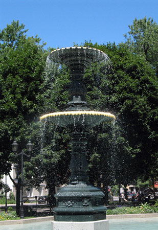 На нашем пути сквер Сен-Луи с большим фонтаном. Живописный сквер очень популярен у фотографов, особенно любящих снимать его осенью.