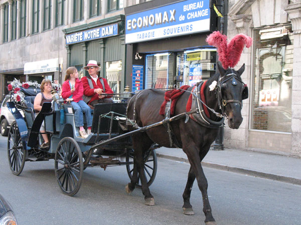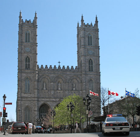 Еще в Монреале любят вывешивать флаги. Каких только нет, наверное, отыщутся флаги всех стран мира, а кроме них порывистый монреальский ветер полощет провинциальные, городские, корпоративные, корабельные, спортивные знамена и вымпелы. Часто встречаются флаги хоккейных болельщиков. Монреальский клуб был создан почти сто лет назад именно как клуб франкоязычных горожан, в дополнение к командам английской и ирландской общин, поэтому первоначально его название "Ле Канадьен де Монреаль". Но так сложилось, что в мире он известен под английским именем. У клуба очень много эпитетов: "Великие", "Блистательные" (это все существительные), "Трехцветные", "Сине-бело-красные", "Поселенцы" ("les Habitants"), так называли французских колонистов в Квебеке. В английском варианте слово сократилось до "Хабс" и получилась популярная кричалка "гоу, Хабс, гоу".