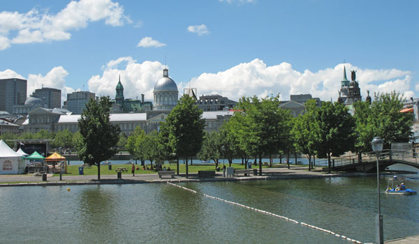 Вид на Монреаль со стороны Старого порта. Летом здесь раздолье для водных велосипедов и судомоделистов, а зимой этот водоем становится открытым катком с теплушкой, прокатом коньков и музыкой из репродуктора.