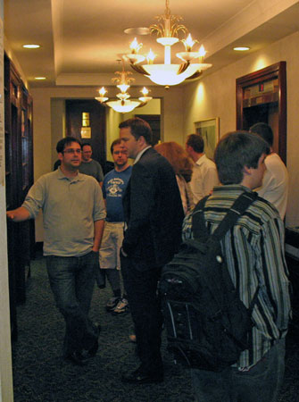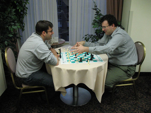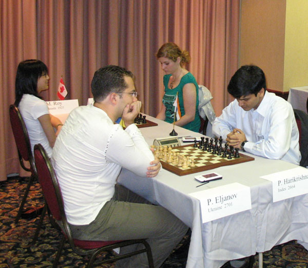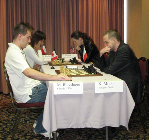 Надо сказать, что жизнь шахматного фестиваля вошла в свою колею. Стало значительно тише в коридорах, чем в первые, после начала квебекского первенства, пару дней. Чтобы не мешать разговорами и не создавать ненужный шум, шахматисты теперь отправляются анализировать партии с первого на седьмой этаж, решены различные непредвиденные проблемы, неизбежно возникающие при организации на новом месте такого значительного спортивного мероприятия.