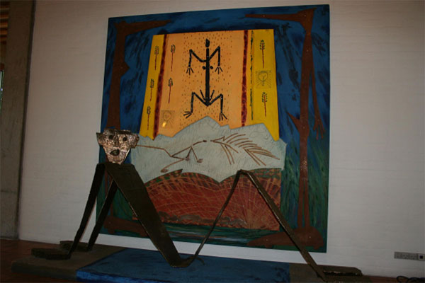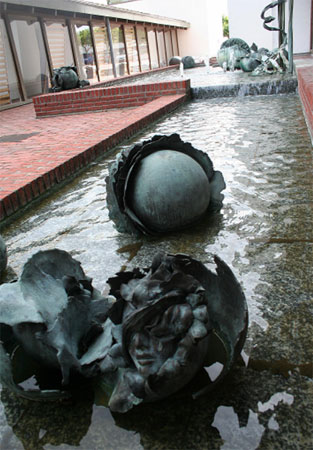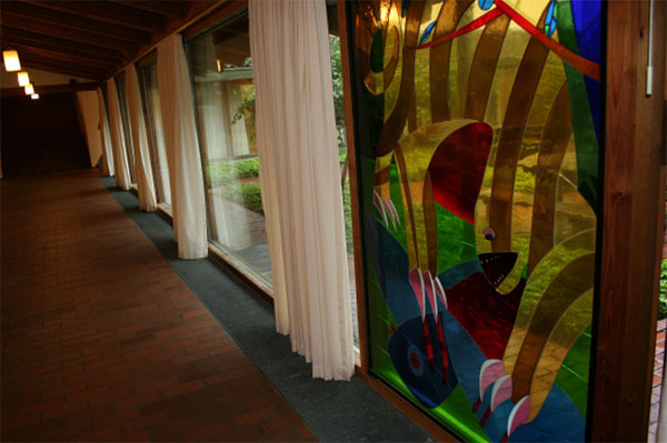 Cам "Ло Сколен" - словно произведение искусства. Архитекторы Ярл Хеджер и Эббе и Карен Клеменсен разработали как саму концепцию здания, так и элементы внутреннего дизайна и декора. Колледж имеет одно из самых прекрасных собраний современного датского искусства с несколькими сотнями уникальных картин и скульптур. Они полны загадок и тайных шифров. Из осколков каменного шара прорисовывается голова девушки... В основании скульптуры виднa чья-то нога... Железный человек сидит напротив конференц-зала и по-cвоему, наверно, болеет за участников турнира... Некоторые картины словно нарисованы детской рукой. Они создают атмосферу жизнерадостности. А в холле с многоуровневыми деревянными переходами на стене притаилось странное существо, улыбающееся нам сразу тремя улыбками. Можно попытаться повторить за ним. Внутренние окна корпуса выходят во внутренний двор, где величаво раскинули дубы свои кроны. И вспоминаются знакомые с детства cтроки из поэмы Пушкина "Руслан и Людмила":
