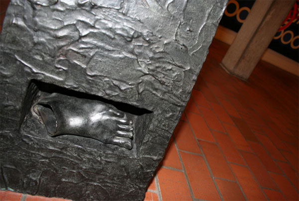 А в темных казематах под замком находится скульптура дремлющего Хольгера Датчанина - национального героя Дании. Согласно легенде, он проснется готовый к подвигу, если над Данией нависнет угроза. "Он весь закован в железо и сталь и подпирает голову могучими руками. Длинная борода его крепко приросла к мраморной доске стола. Он спит и видит во сне все, что делается в Дании", - рассказывает нам андерсеновская сказка.
