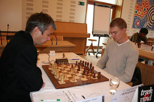 Белые имели большое преимущество, но неожиданно рокировали в длинную сторону, после чего белый король попал под матовую атаку. Белые вынуждены были отдать ферзя, и новым чемпионом Скандинавских стран стал Эмануэль Берг.