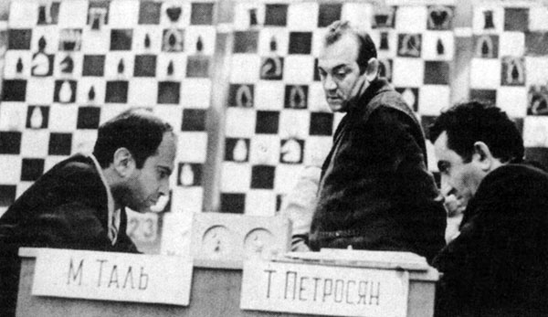 К месту игры я ездил на метро, остальные участники тоже кто как. Когда я подходил к ДК, к дверям подъехало такси, и оттуда вышел Таль. Я его пропускаю вперед и вижу: Таль идет небритый, сгорбившийся, жалко на него смотреть… Когда я вышел на сцену, Таль уже сидел за столиком и напряженно думал - видимо, только сейчас он начал готовиться к партии, дома не стал тратить на меня время и силы. В итоге этих раздумий он решил после 1.е4 с5 2.Nf3 e6 сыграть 3.d3…