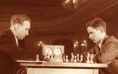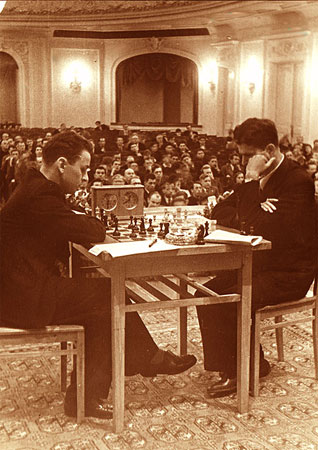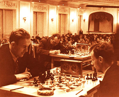 Из прессы: "4 сентября – большой шахматный день страны: начался XII всесоюзный чемпионат. К восьми часам вечера участники первенства – сильнейшие шахматисты нашей родины – собрались во Всесоюзном комитете по делам физкультуры и спорта.