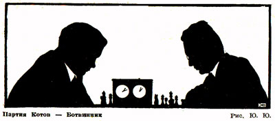 Кроме Кереса соперником для Ботвинника может оказаться Котов, хотя для молодого шахматиста всегда бывает очень трудно повторить свой успех. У Котова есть кое-что общее с Ботвинником в складе характера. Он обладает отличной выдержкой, настойчивостью, спокойствием. Он играет очень цепко и проиграет, несомненно, лишь минимальное количество партий. Будет вполне закономерно, если он займет высокое место.