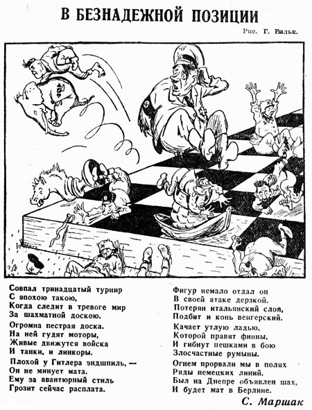 Плакат из последнего номера газеты "64", датированного 25 июня 1941 года. На июньском номере прервалось и издание журнала "Шахматы в СССР"… |