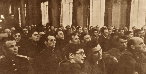 Из прессы: "Почти три года продолжается Великая Отечественная война советского народа против немецко-фашистских захватчиков. Под водительством Верховного Главнокомандующего Маршала Советского Союза товарища Сталина наш народ, наша Армия сплотились в несокрушимый боевой лагерь. Героическая Красная Армия успешно выполняет задачу очищения родной земли от лютого врага.