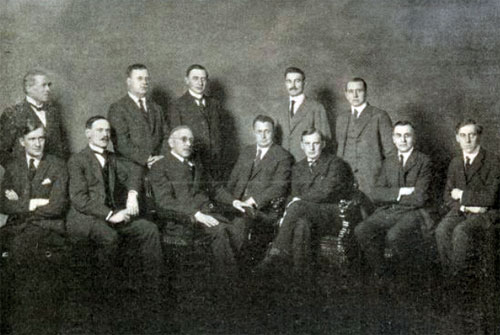 Рис.9 А. Алехин (третий справа в первом ряду) среди монреальских шахматистов в декабре 1923 года. |