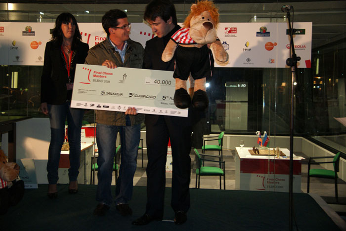 Последний тур был не совсем обычный, так как правила в Бильбао были не совсем традиционные. Обычно ведь, что бывает? Лидер, играющий белыми, опережающий преследователя на пол-очка (в нашем случае на "единицу") делает ничью и ждет: пусть догоняют, если смогут. А тут ничья Топалову ничего не гарантировала. Аронян, играя свою партию, все время выворачивал шею на столик, где Веско и Василий играли. И довыворачивался. Как только увидел, что Василий проиграл, лишь на мгновение ослабил концентрацию и был сурово наказан!