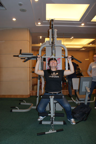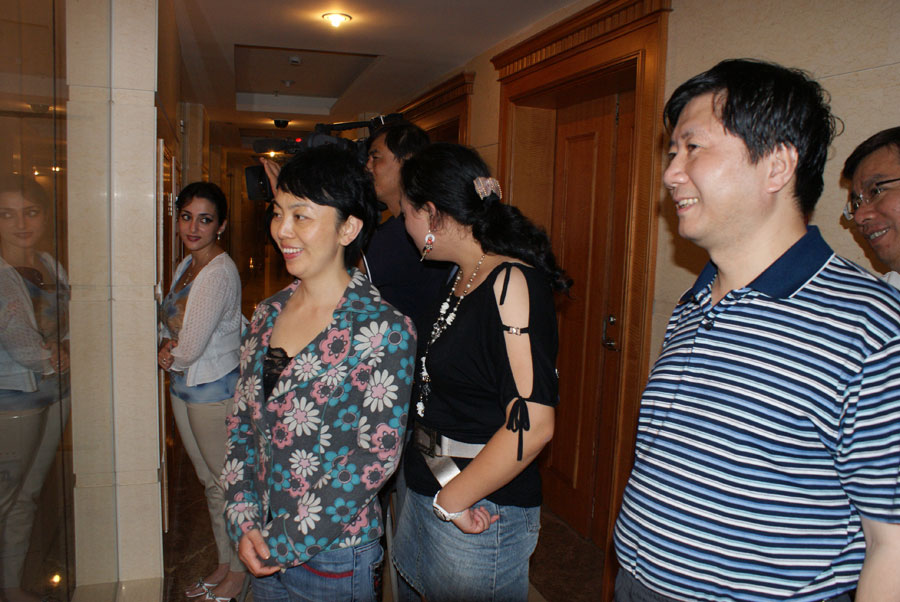 Ворота в шахматное королевство. Интересно, что вместо традиционного “Приветствуем участников соревнований” на входе написано поздравление с 60-летием образования КНР, а сторона, обращенная во внутренний дворик, гласит: “Желаем Китаю (Нанкину) успешного проведения супертурнира”. Зато возле лестницы, ведущей к турнирным залам, предусмотрительно стоит Хоттей - бог счастья и благополучия. Согласно поверью, можно заручиться помощью этого божества, потирая каждый день его животик, а если, сконцентрировавшись, провести 300 раз, думая о заветном желании, то оно обязательно исполнится.