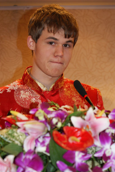 Сразу после награждения к Магнусу мгновенно образовалась целая очередь репортеров. Мне же удалось задать лишь один из заготовленных вопросов и услышать: "Я счастлив, очень счастлив!"