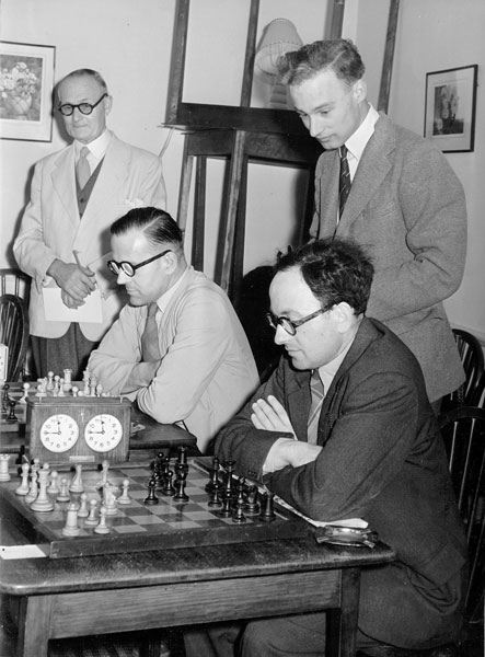Будучи сотрудником ЦПС Ирвинг Гуд (на снимке – в темном костюме) продолжал вполне успешно сражаться в региональных турнирах. В середине 50-х Британская шахматная федерация оценивала его силу рейтингом от 209 до 216. В переводе на современный язык Эло это в пределах 2100 единиц.