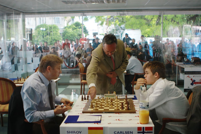Для начала пару слов о чудесах. Помните, классическое «по щучьему велению, по моему хотению» или радикальное «рыбка взмахнула хвостиком и выполнила три желания». Нет, недаром об обитателях подводного царства сложено немало легенд, сказок и анекдотов, в которых воспевается их волшебная сила. Но затем наступили новые времена, и на смену исключительно полезному диетическому продукту пришел мутант в виде одноименной компьютерной программы. И пришлось взрослым и детишкам в одночасье забыть «Мою систему» и «Здравый смысл в шахматной игре» и стать рабами «Рыбки». Даже доминошники, которые всегда гордились своим интеллектом, попав в патовую позицию, стали кричать «рыба». Так что же такого в этой «Рыбке» особенного? Может быть, все дело в «рыбьем взгляде» на черно-белые секреты? Начитавшись умных книжек по ихтиологии и глотнув для храбрости «рыбьего жира», я нацепил на фотокамеру объектив «Рыбий Глаз» и погрузился в глубины турнира Mtel Masters. Тем более что обстановочка располагала для эксперимента: громадный аквариум, в котором все дышало шахматами. И уже первые впечатления оказались очень забавными.