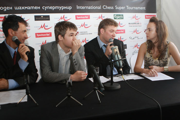 К счастью, пожалели красивую женщину и разрешили экс-чемпионке мира Антоанетте Стефановой комментировать партии в обычной одежде. Чего доброго, могли для антуража нарядить русалкой. |