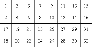 В начале рассказа Нилакантха инструктирует читателя нарисовать доску из 64 клеток и пометить "гусиными лапками" все угловые поля, по два средних поля на каждой из крайних линий, а также четыре центральных поля. Эта разметка встречалась нам в первой главе.