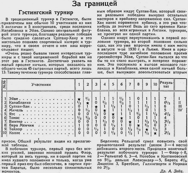 В июне 2009 года исполнилось 80 лет с того дня, как европейская шахматная арена встретила загадочного гостя. Мир Малик Султан-Хан, уроженец деревни Миттха Тавана индийской провинции Пенджаб (ныне территория Пакистана), уже во втором своём турнире сотворил сенсацию, уверенно став чемпионом Великобритании. За четыре года выступлений Султан-Хан три раза выигрывал чемпионат метрополии, трижды возглавлял английскую сборную на шахматных Олимпиадах и несколько раз занимал первое и призовые места в международных турнирах. В его активе - победы над Капабланкой, Рубинштейном, Флором, Маршаллом, а также выигрыш матча из 12 партий у Тартаковера. В 1933 году Султан-Хан покинул Европу и шахматы так же внезапно, как и появился в них.