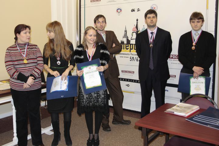 У финалистов, завоевавших «бронзу», тоже нашлось сходство – Никита Витюгов и Валентина Гунина уже не первый год уверенно отбираются на Суперфинал, однако впервые им удалось попасть в тройку победителей. Недавно я расспрашивала Валю для сайта moschess.ru. Она с гордостью сказала, что ей наконец-то удалось избавиться от вредной привычки – делать ходы почти не думая. Занятия с несколькими тренерами сразу тоже принесли свои плоды, третье место в Суперфинале – большой шаг вперед.