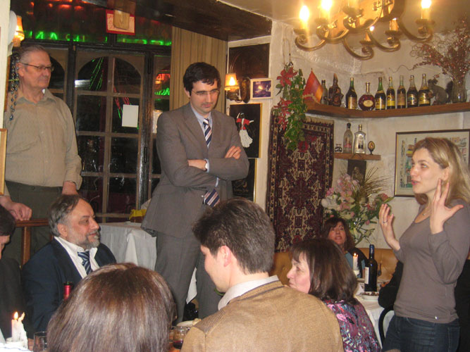 Юбиляра поздравляют Эльмира Скрипченко и Владимир Крамник |